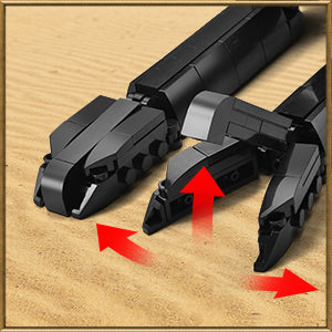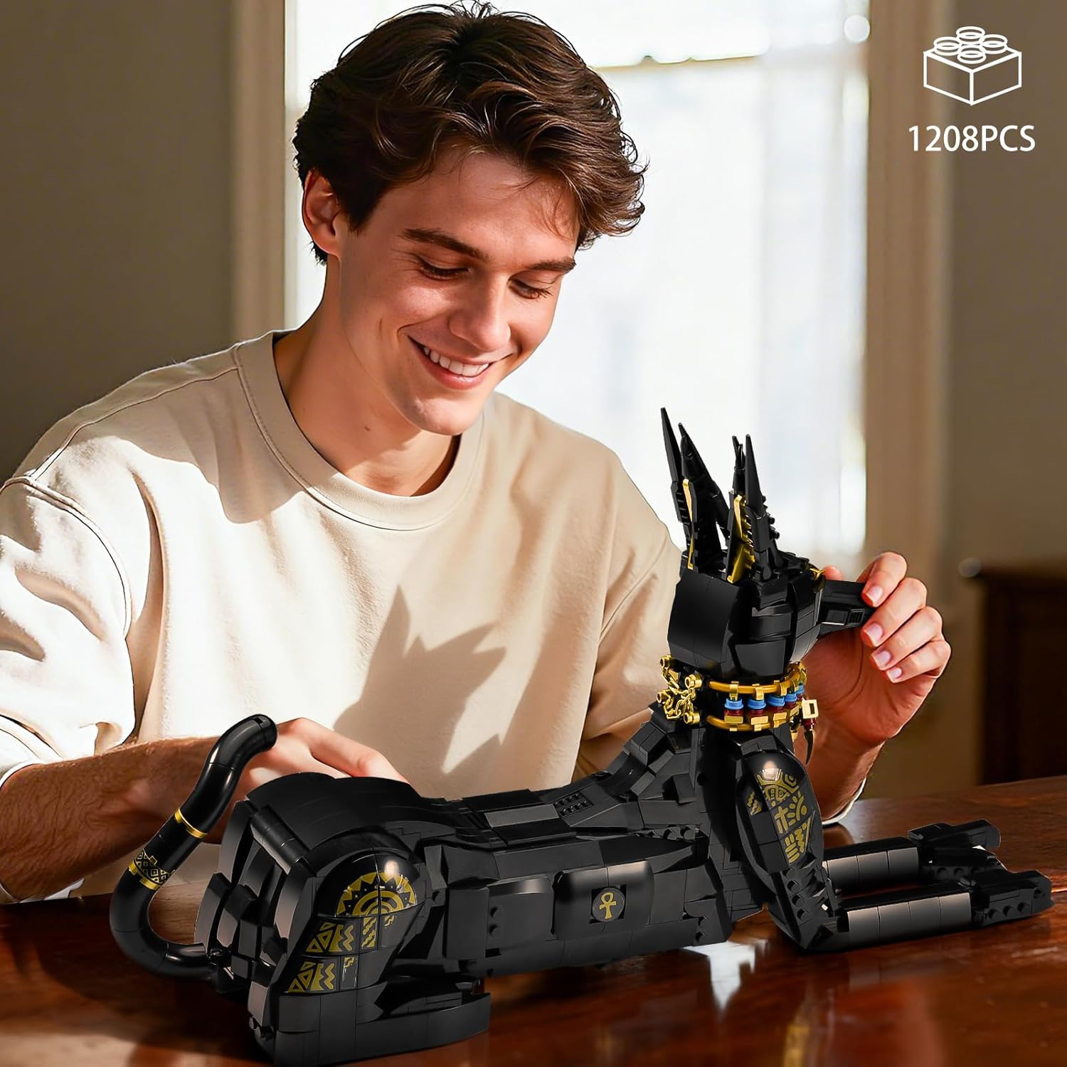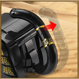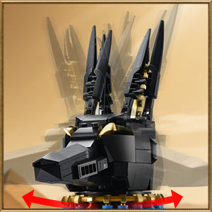 This Egyptian dog building set presents a sacred hound with regal elegance, featuring movable head, tail and front legs, as well as a striking design of black bricks with golden accents.