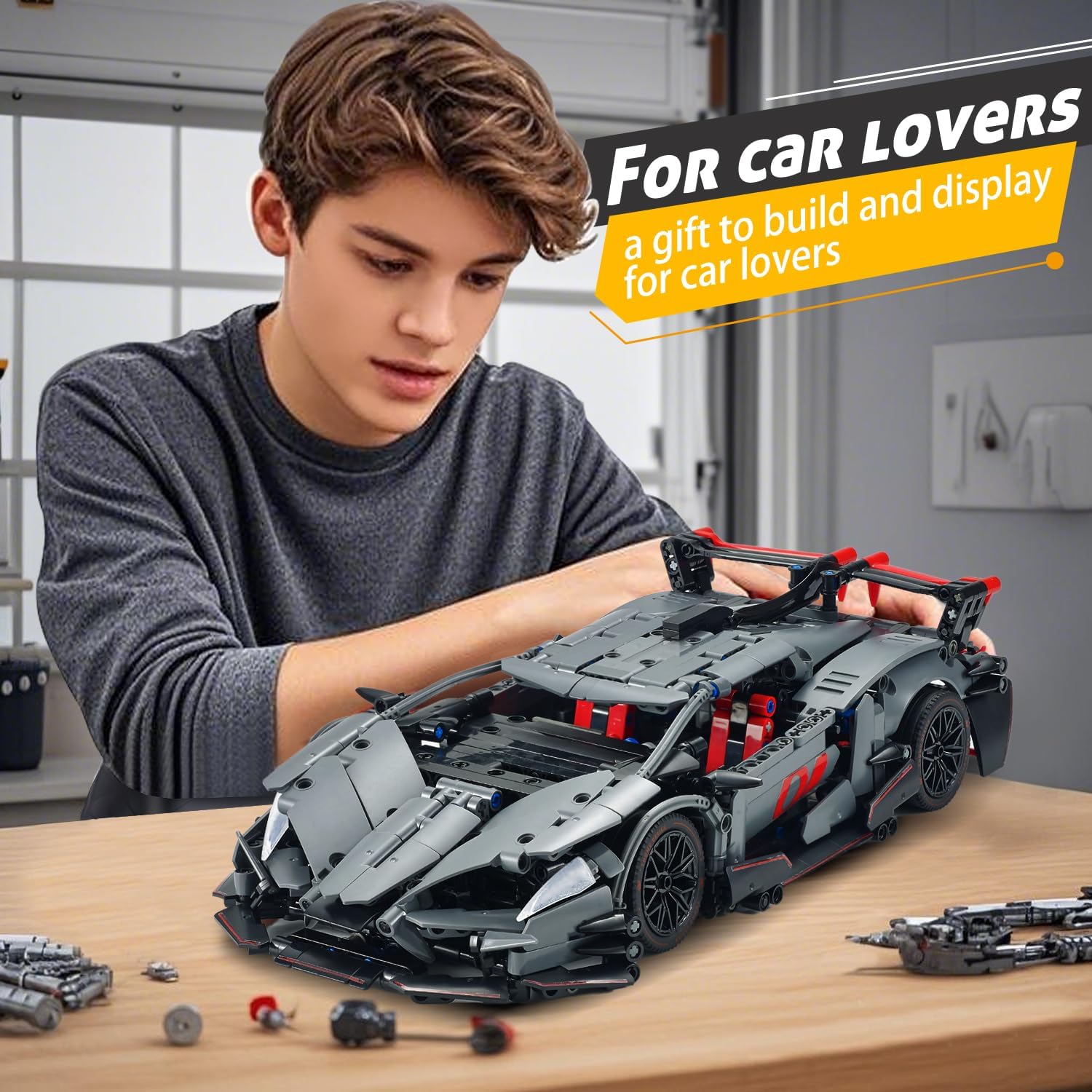 991-piece 1:14 sports car building model, offering a challenging assembly experience, suitable for kids aged 8+ and adults, inspiring creativity and hands-on skills.