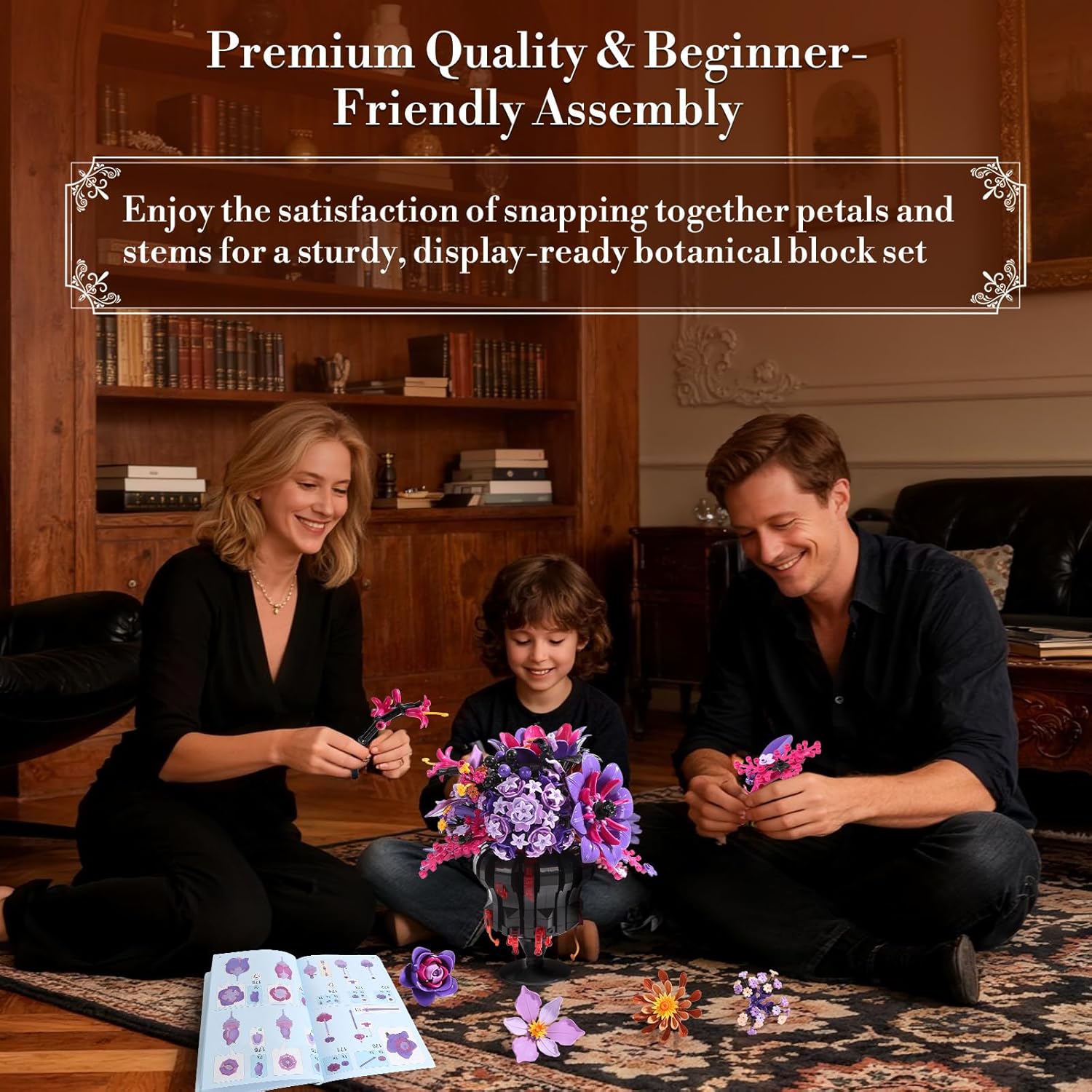 - 【 Perfect Valentine’s Day Surprise for Her 】: Ditch the fleeting fresh flowers! Spoil your girlfriend, wife, or partner with this elegant purple flower bouquet building block set—a unique, long-lasting keepsake t