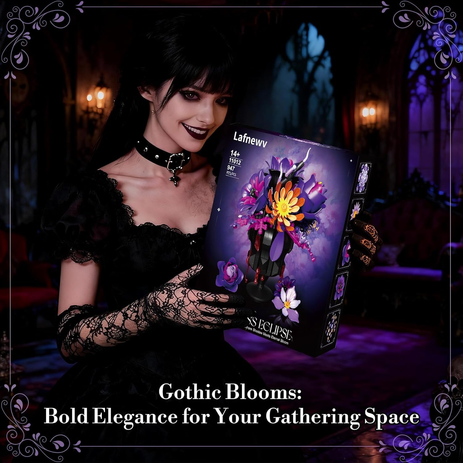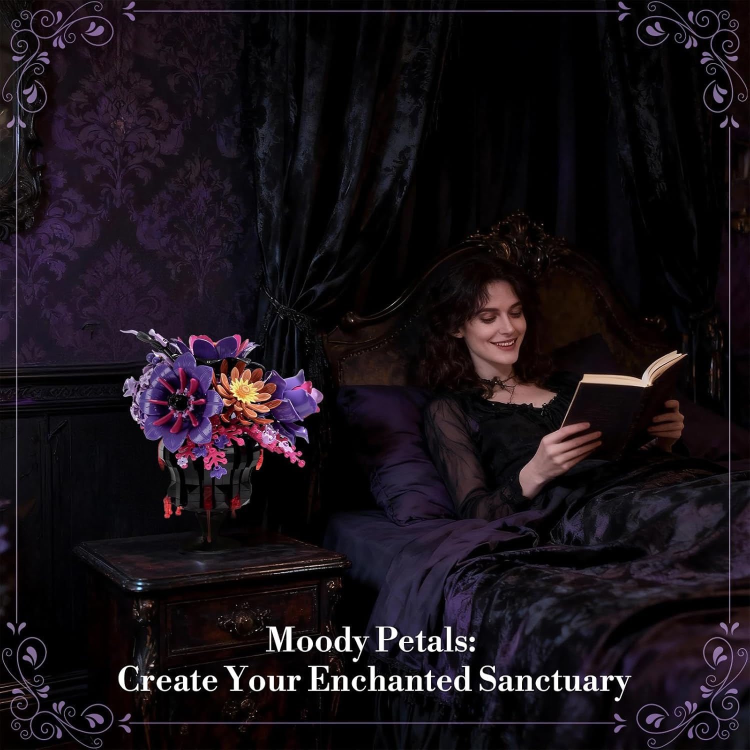 - 【 Gothic-Inspired Home Decor for Mysterious Elegance 】: Display your flower bouquet building block kit in a vase on desks, nightstands, or as a centerpiece in living rooms. The deep purple roses add a bold, gothic flair to modern interiors, merging botanical artistry with edgy home aesthetics